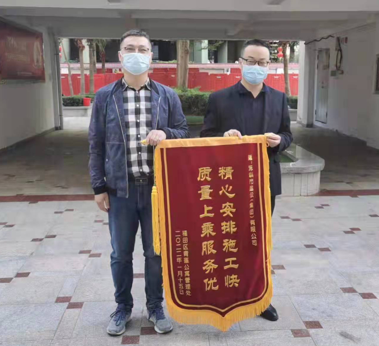 2022年1月21日,福田區(qū)青蓮公寓管理處有關(guān)同志向福田區(qū)第七期優(yōu)質(zhì)飲用水入戶工程(第五批)施工總承包項(xiàng)目部贈(zèng)送“精心安排施工快 質(zhì)量上乘服務(wù)優(yōu)”的錦旗,項(xiàng)目經(jīng)理毛浣林代表項(xiàng)目部接受錦旗。此外,本項(xiàng)目施工范圍內(nèi)的部分小區(qū)向其他參建方贈(zèng)送錦旗。 ...